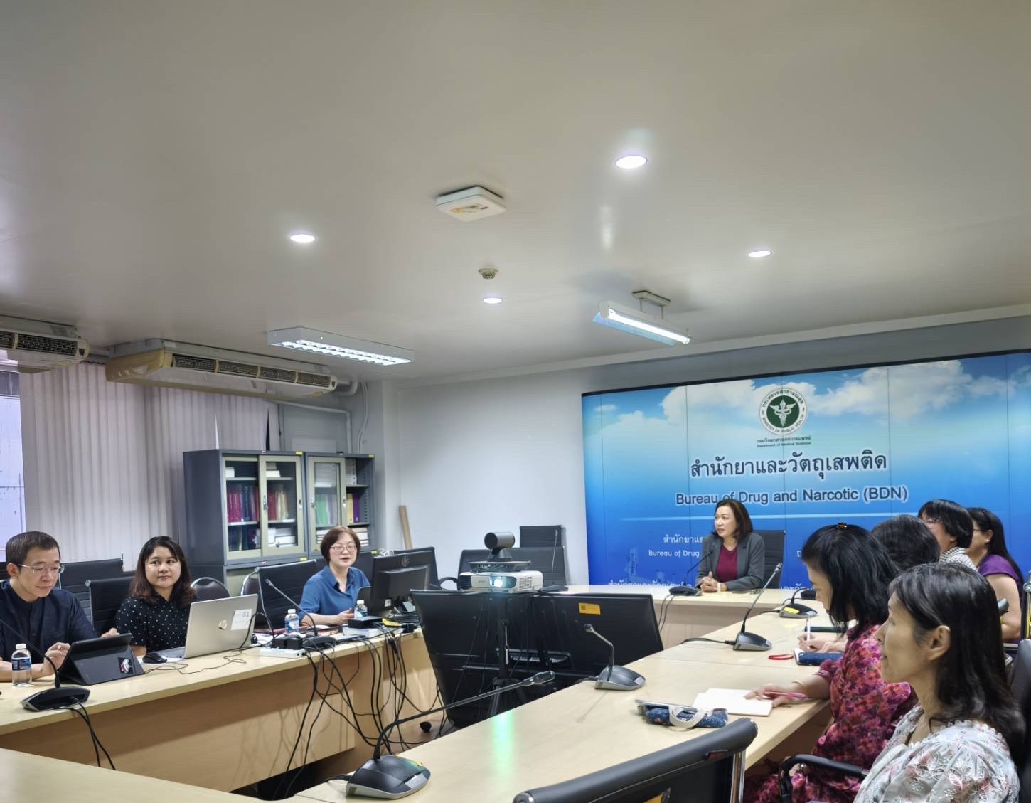 การประชุมหารือในครั้งนี้นำโดย ภญ. ศิริวรรณ ชัยสมบูรณ์พันธ์ ผู้อำนวยการสำนักยาและวัตถุเสพติด และ ภญ. จิรานุช แจ่มทวีกุล รองผู้อำนวยการฯ พร้อมด้วยเจ้าหน้าที่จากสำนักฯ และผู้แทนจากกองยา อย. ได้แก่ ภญ. ปิยาภรณ์ อ้อนคำภา ภก. ไมตรี ชีวกุลประสิทธิ์ และ ภญ. จุฑามาศ ด้วงสง