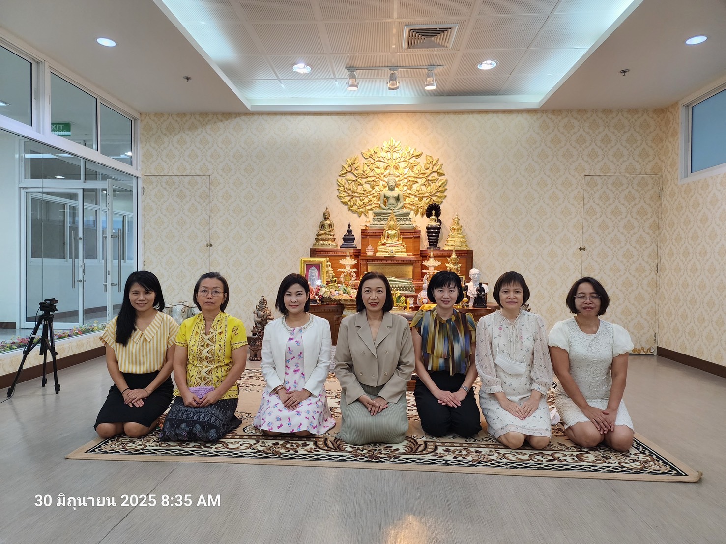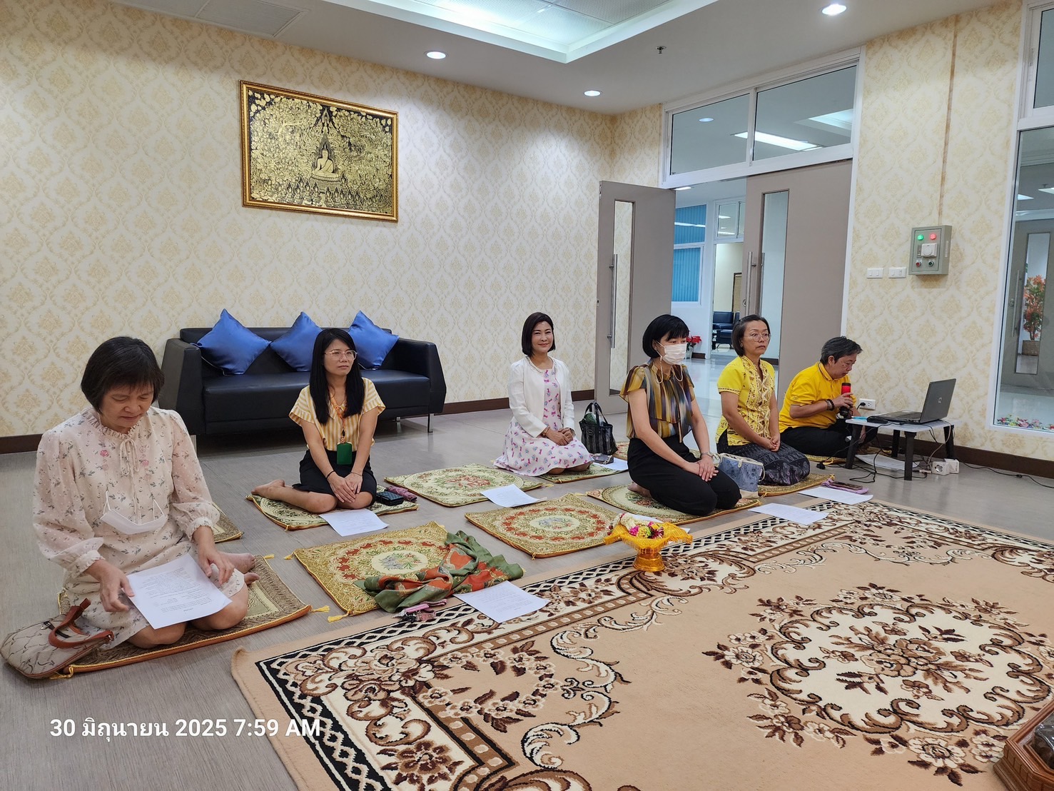 ภญ.ศิริวรรณ ชัยสมบูรณ์พันธ์ ผู้อำนวยการสำนักยาและวัตถุเสพติด พร้อมด้วย ดร.ภญ.บุญฑริกา บุญญาภิวัฒน์ รองผู้อำนวยการ และเจ้าหน้าที่สำนักยาและวัตถุเสพติด ได้ร่วมกิจกรรมสวดมนต์เพื่อการเจริญสติ และสร้างพลังจิตที่ดีของบุคลากร ตามนโยบายสำนักงานปลัดกระทรวงสาธารณสุข ในการส่งเสริมสุขภาพดีวิถีใหม่ วิถีธรรม วิถีไทย วิถีเศรษฐกิจพอเพียง ด้วยหลัก 3 ส (สวดมนต์ สมาธิ สนทนาธรรม) 3 อ (อาหาร ออกกำลังกาย อารมณ์) และ 1 น (นาฬิกาชีวิต) เพื่อการควบคุมป้องกันโรคเบาหวาน ความดันโลหิตสูง ในวันจันทร์ที่ 30 มิถุนายน 2568 เวลา 8.00 – 8.30 น. ณ ห้องพระ ชั้น 9 อาคาร 100 ปีการสาธารณสุขไทย กรมวิทยาศาสตร์การแพทย์ และผ่าน ระบบ Zoom Meeting