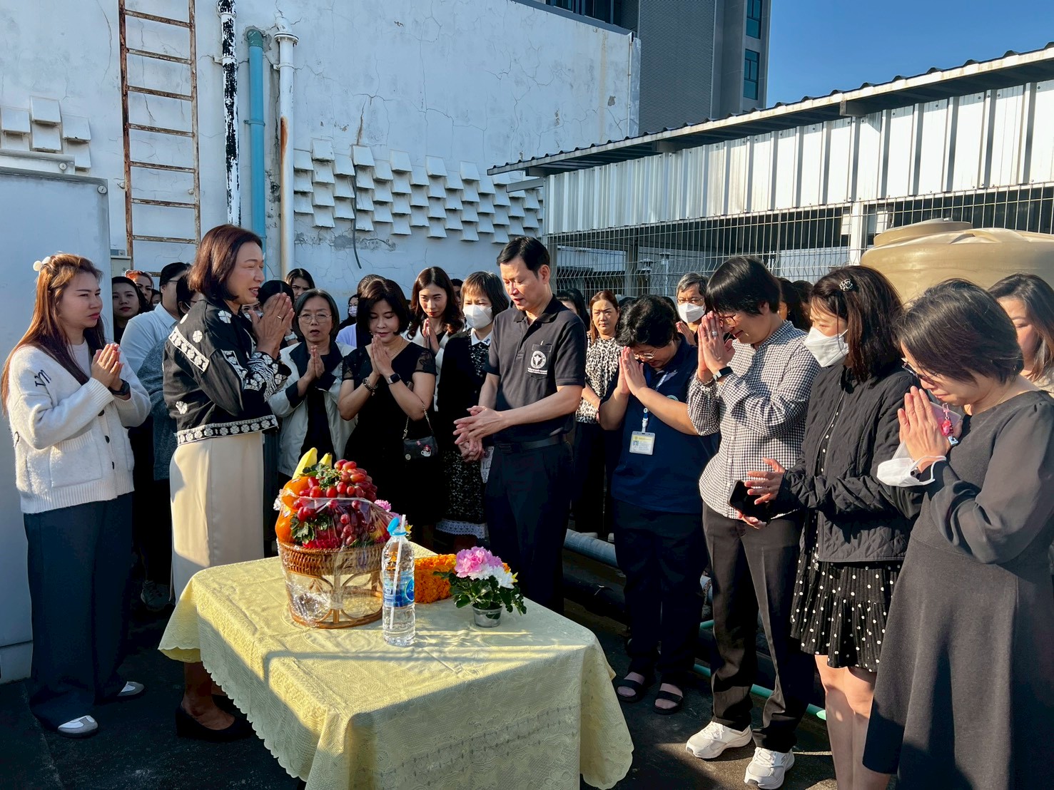 พิธีดังกล่าวจัดขึ้น ณ บริเวณหน้าศาลพระภูมิ ด้านข้างอาคาร 8 โดยมีการถวายพวงมาลัย เครื่องสักการะ และกล่าวคำอธิษฐาน ท่ามกลางบรรยากาศแห่งความเป็นสิริมงคลและความสามัคคีของบุคลากร