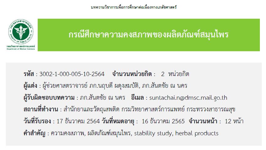 ► กรณีศึกษาความคงสภาพของผลิตภัณฑ์สมุนไพร