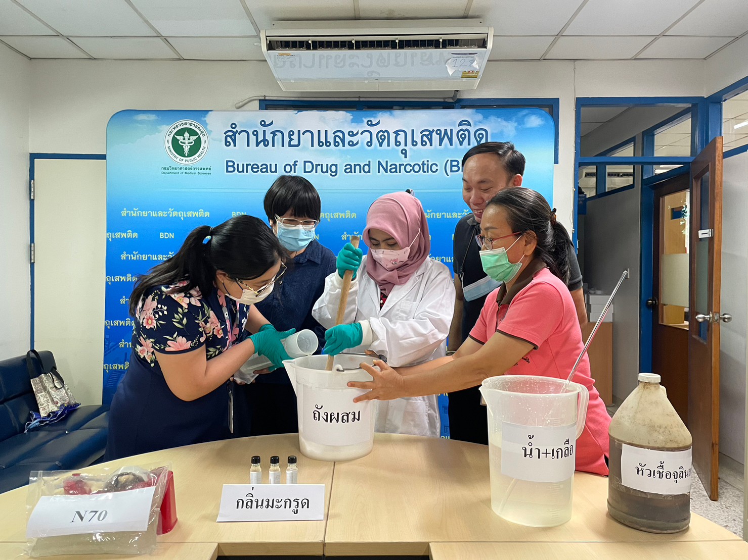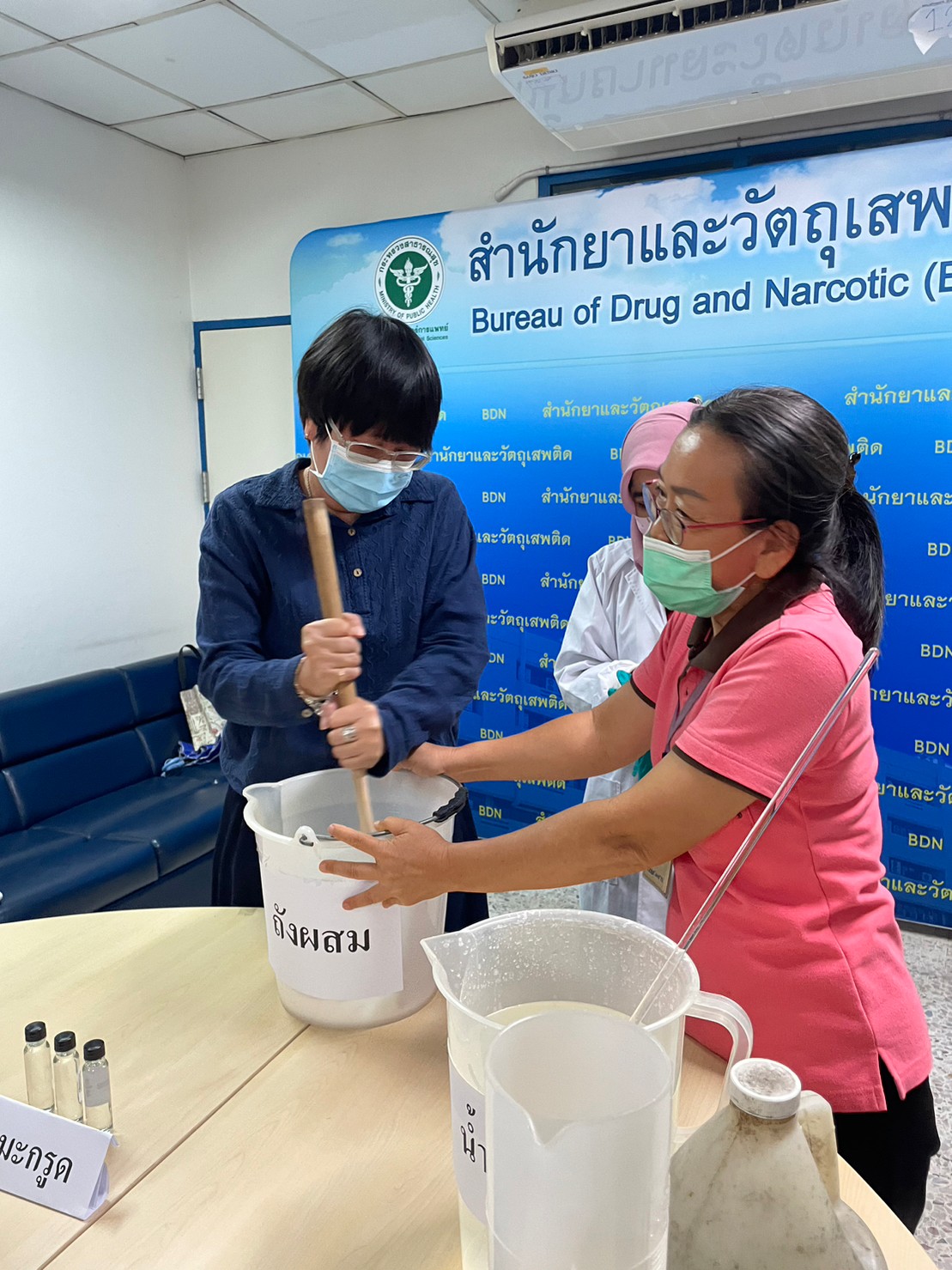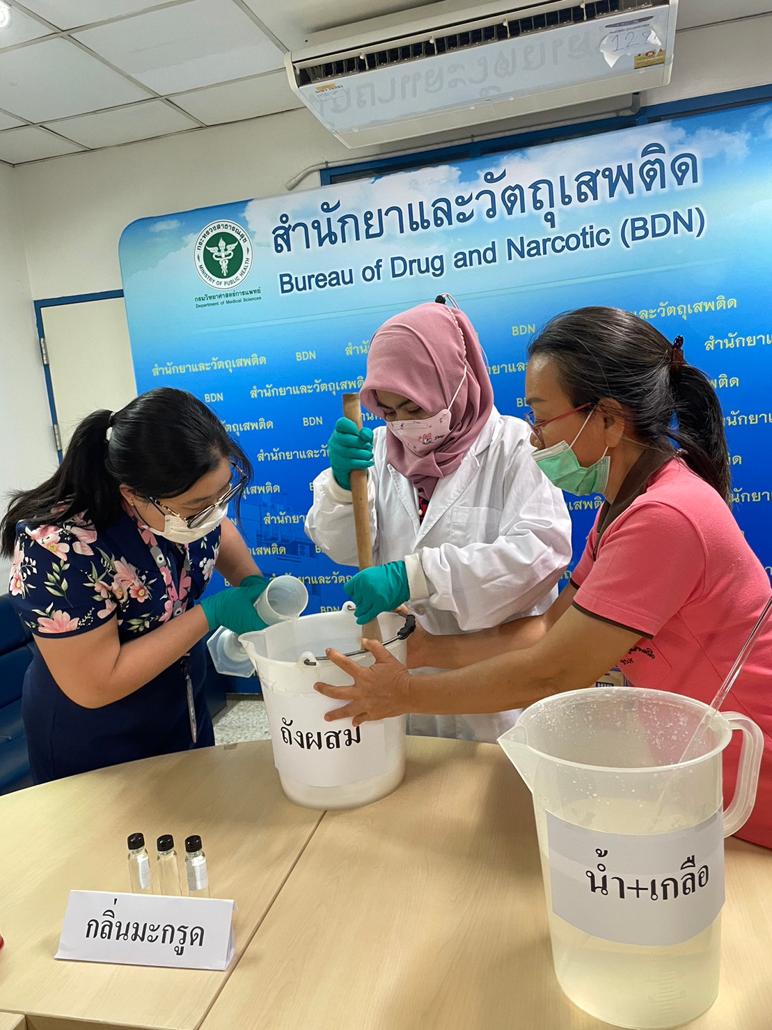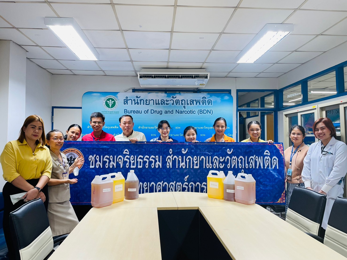 คณะเจ้าหน้าที่สำนักยาและวัตถุเสพติด ร่วมกิจกรรมทำน้ำยาล้างจาน เพื่อมอบให้ศูนย์พัฒนาอาชีพคนตาบอด และศูนย์ฝึกอาชีพปัญญาคาร จังหวัดนนทบุรี ในวันที่ ๑๔ มีนาคม ๒๕๖๖