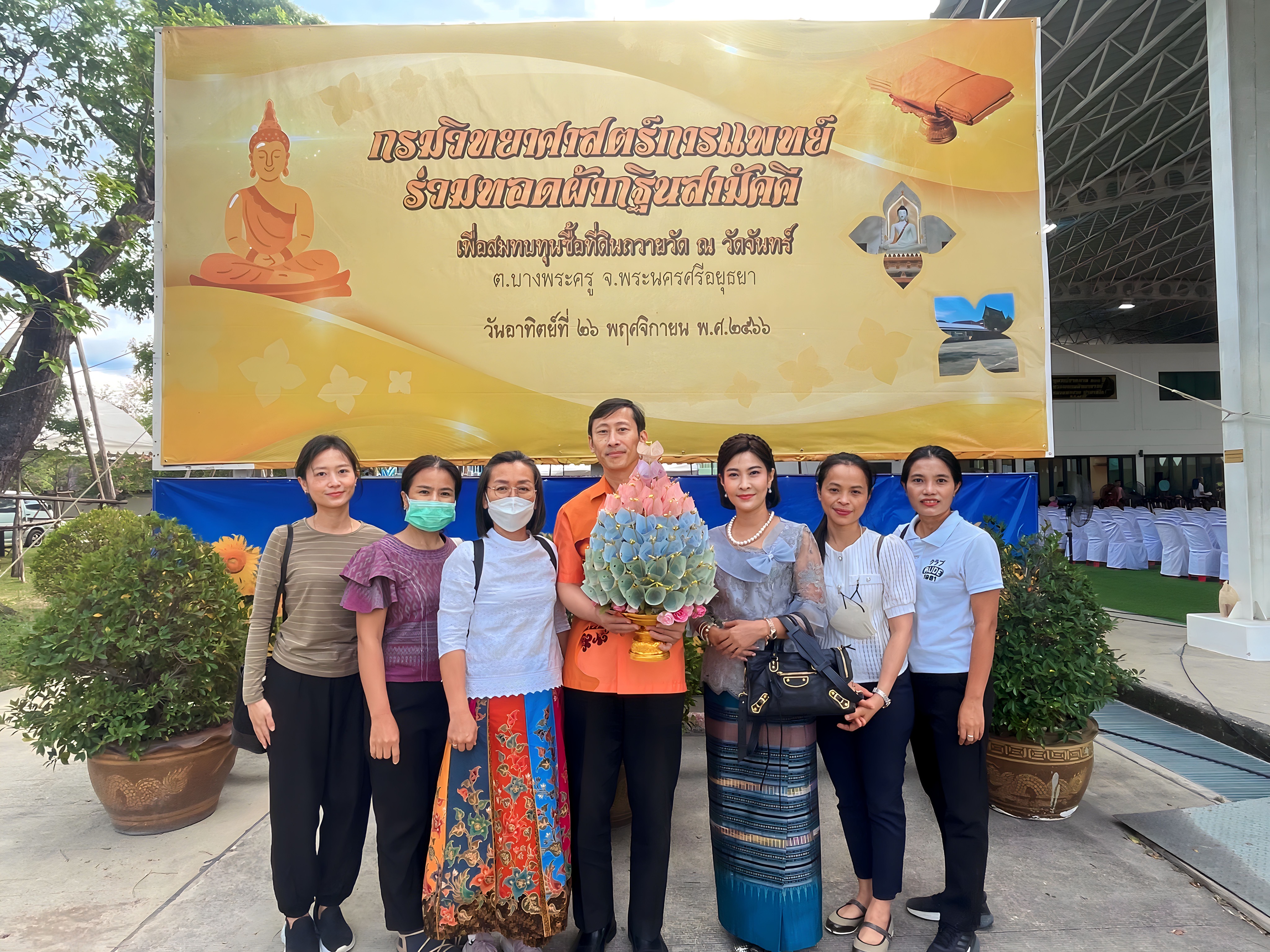 วันที่ 26 พฤศจิกายน 2566 เภสัชกรสมศักดิ์ สุนทรพาณิชย์ ผู้อำนวยการสำนักยาและวัตถุเสพติด พร้อมด้วยเจ้าหน้าที่ ได้เข้าร่วมพิธีทอดกฐินสามัคคีที่กรมวิทยาศาสตร์การแพทย์เป็นเจ้าภาพ ณ วัดจันทร์ จ.พระนครศรีอยุธยา โดยมีนายแพทย์ยงยศ ธรรมวุฒิ รักษาราชการแทนอธิบดีกรมวิทยาศาสตร์การแพทย์ เป็นประธาน พร้อมด้วย นายแพทย์พิเชฐ บัญญัติ นายแพทย์ปิยะ ศิริลักษณ์ รองอธิบดีกรมวิทยาศาสตร์การแพทย์ ผู้บริหาร เจ้าหน้าที่ คณะกฐิน และชาวบ้าน ยอดเงิน ทำบุญทอดกฐินสามัคคีสมทบทุนซื้อที่ดินถวายวัดในครั้งนี้ ได้เงินทั้งสิ้น 2,664,554 บาท