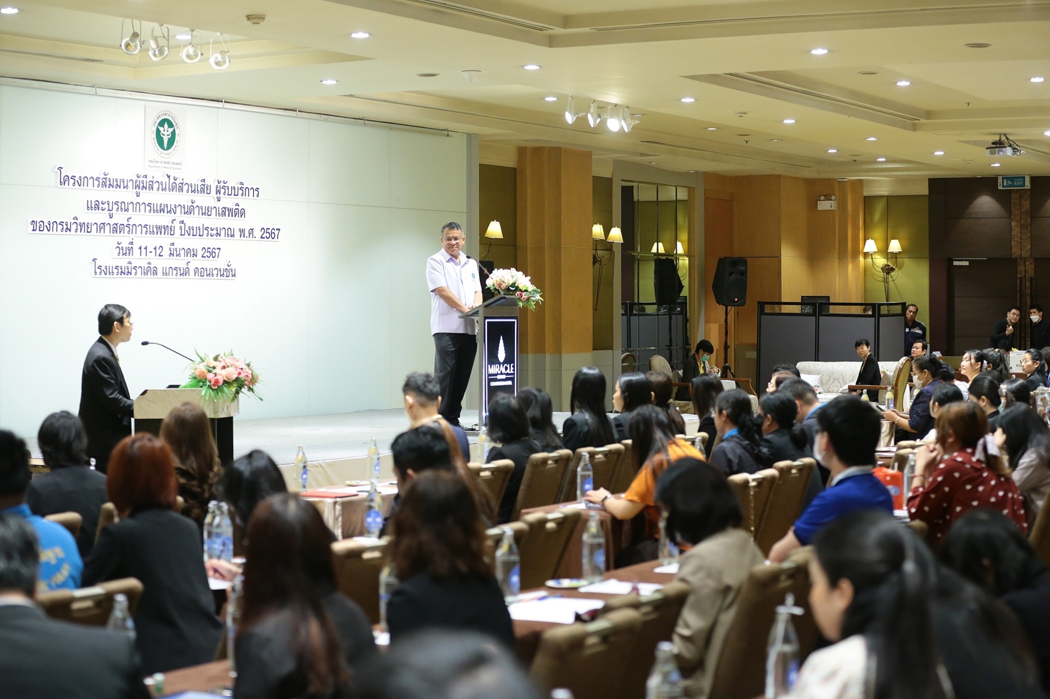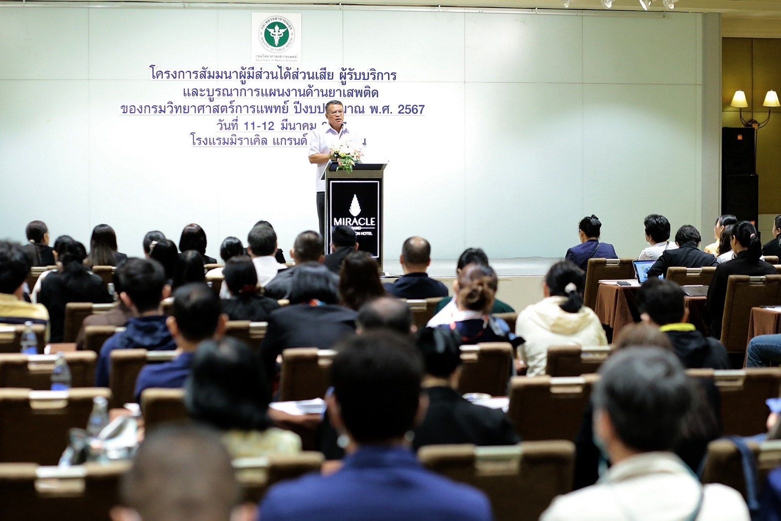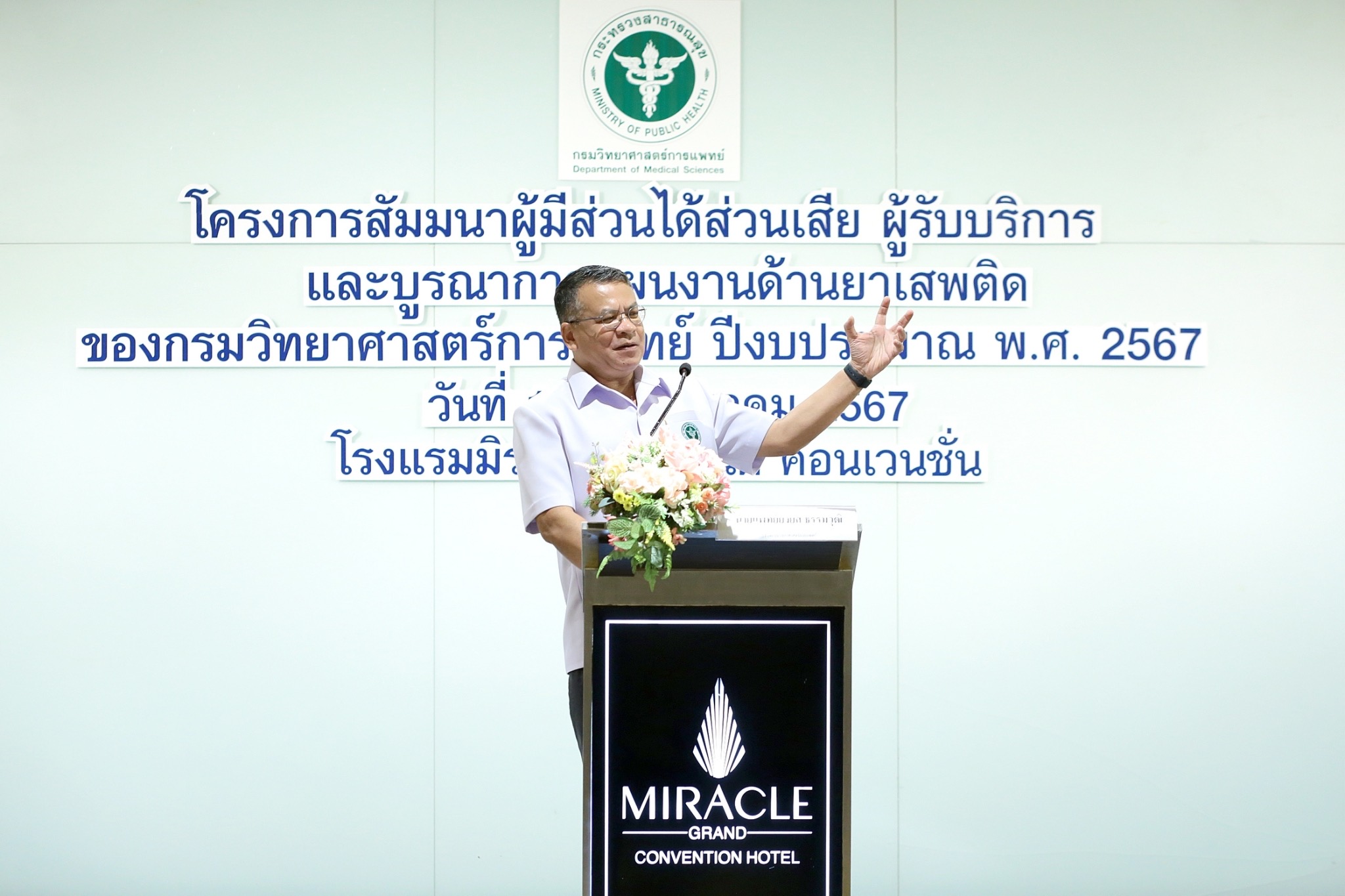 นายแพทย์ยงยศ ธรรมวุฒิ อธิบดีกรมวิทยาศาสตร์การแพทย์ ให้เกียรติเป็นประธานเปิดการสัมมนาผู้รับบริการและผู้มีส่วนได้ส่วนเสียด้านยาและด้านยาเสพติด และบูรณาการแผนงานด้านยาเสพติด กรมวิทยาศาสตร์การแพทย์ ประจำปีงบประมาณ 2567 โดยมีเภสัชกรสมศักดิ์ สุนทรพาณิชย์ ผู้อำนวยการสำนักยาและวัตถุเสพติด กล่าวรายงาน การสัมมนาในครั้งนี้มีวัตถุประสงค์เพื่อชี้แจงแนวทางการดำเนินงาน และการให้บริการด้านยาและด้านยาเสพติดของกรมวิทยาศาสตร์การแพทย์ เสริมสร้างองค์ความรู้ ข้อกฎหมาย นโยบายการดำเนินงาน ตลอดจนเพื่อบูรณาการการปฏิบัติงานให้มีประสิทธิภาพสูงสุดและเป็นไปในแนวทางเดียวกัน พร้อมทั้งเปิดโอกาสให้หน่วยงานทั้งภาครัฐ รัฐวิสาหกิจ เอกชน สมาคม และผู้มีส่วนได้ส่วนเสียได้แสดงความคิดเห็น  ตลอดจนเป็นเวทีแจ้งให้ทราบถึงอุปสรรคต่างๆ ที่เกิดขึ้นในการติดต่อประสานงานกับสำนักยาและวัตถุเสพติด โดยทางด้านยาจัดสัมมนาในวันที่ 11 มีนาคม 2567 ส่วนทางด้านยาเสพติด จัดสัมมนาในวันที่ 11-12 มีนาคม 2567 ณ โรงแรมมิราเคิลแกรนด์ คอนเวนชั่น กรุงเทพมหานคร