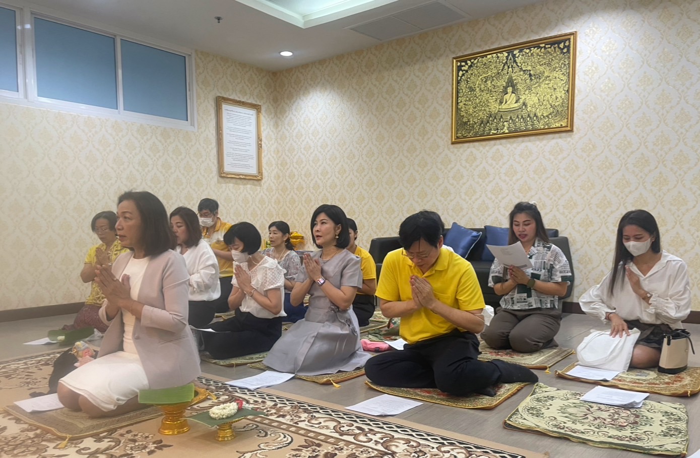 ภญ.ศิริวรรณ ชัยสมบูรณ์พันธ์ ผู้อำนวยการสำนักยาและวัตถุเสพติด พร้อมด้วย ภก.สิริชัย กระบี่ศรี ภญ.บุณฑริกา บุญญาภิวัฒน์ รองผู้อำนวยการ และเจ้าหน้าที่สำนักยาและวัตถุเสพติด ได้ร่วมกิจกรรมสวดมนต์เพื่อการเจริญสติ และสร้างพลังจิตที่ดีของบุคลากร ตามนโยบายสำนักงานปลัดกระทรวงสาธารณสุข ในการส่งเสริมสุขภาพดีวิถีใหม่ วิถีธรรม วิถีไทย วิถีเศรษฐกิจพอเพียง ด้วยหลัก 3 ส (สวดมนต์ สมาธิ สนทนาธรรม) 3 อ (อาหาร ออกกำลังกาย อารมณ์) และ 1 น (นาฬิกาชีวิต) เพื่อการควบคุมป้องกันโรคเบาหวาน ความดันโลหิตสูง ในวันจันทร์ที่ 3 มีนาคม 2568 เวลา 8.00 – 8.30 น. ณ ห้องพระ ชั้น 9 อาคาร 100 ปีการสาธารณสุขไทย กรมวิทยาศาสตร์การแพทย์ และผ่าน ระบบ Zoom Meeting โดยมีผู้สนใจเข้าร่วมกิจกรรมในครั้งนี้ รวมประมาณ 30 คน